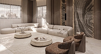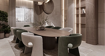 The Al-Matarfiya Villa project reflects Sinyar’s vision of delivering a fully integrated interior design that balances elegance and functionality. The design was developed with a calm, contemporary approach, using neutral tones, natural materials, and carefully planned lighting to create visually connected and well-balanced spaces. The scope of work included full interior design, space planning, material and finishes selection, lighting design, and custom furniture, with a smart layout that enhances privacy and spatial flow. The project features the main entrance, men’s majlis with washing and bathroom areas, dining room, family living area, and staircase on the ground floor, in addition to family living spaces, the master bedroom with office, walk-in wardrobe and bathrooms, and additional bedrooms on the first floor, as well as the laundry area and maid’s room on the roof floor, resulting in a contemporary residence.