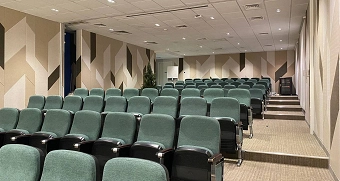 The two halls at SIPCHEM Company have been designed with a focus on effective sound insulation and echo reduction through the use of acoustic wall panels. The flooring has been carefully selected to absorb sound and minimize noise, ensuring a comfortable auditory experience for visitors. Additionally, the lighting distribution has been thoughtfully considered to align with the arrangement of the chairs and the location of the stage, contributing to a relaxing atmosphere suitable for performances. Warm lighting has been employed to enhance the overall impression, aiding in focus and enjoyment of the presentations. Furthermore, attention has been paid to the colors and design details to create a cohesive environment that feels calm and inviting. All these elements work together to ensure a space that meets visitors' needs, providing an exceptional experience with every visit.