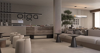 A modern coffee shop featuring a design that blends comfort and elegance with simple, functional touches. It incorporates natural materials to add a sense of warmth, complemented by comfortable seating and stylish lighting that create a distinctive atmosphere. The layout includes a bar preparation area, elegant seating on the ground floor, and a carefully designed exterior façade that reflects the shop’s contemporary identity. The design also adopts smart solutions to enhance visitor comfort and focuses on sustainability through the use of eco-friendly materials. The space is crafted to offer customers a balanced experience of calm and modernity, making it ideal for enjoying coffee, working, or meeting with friends